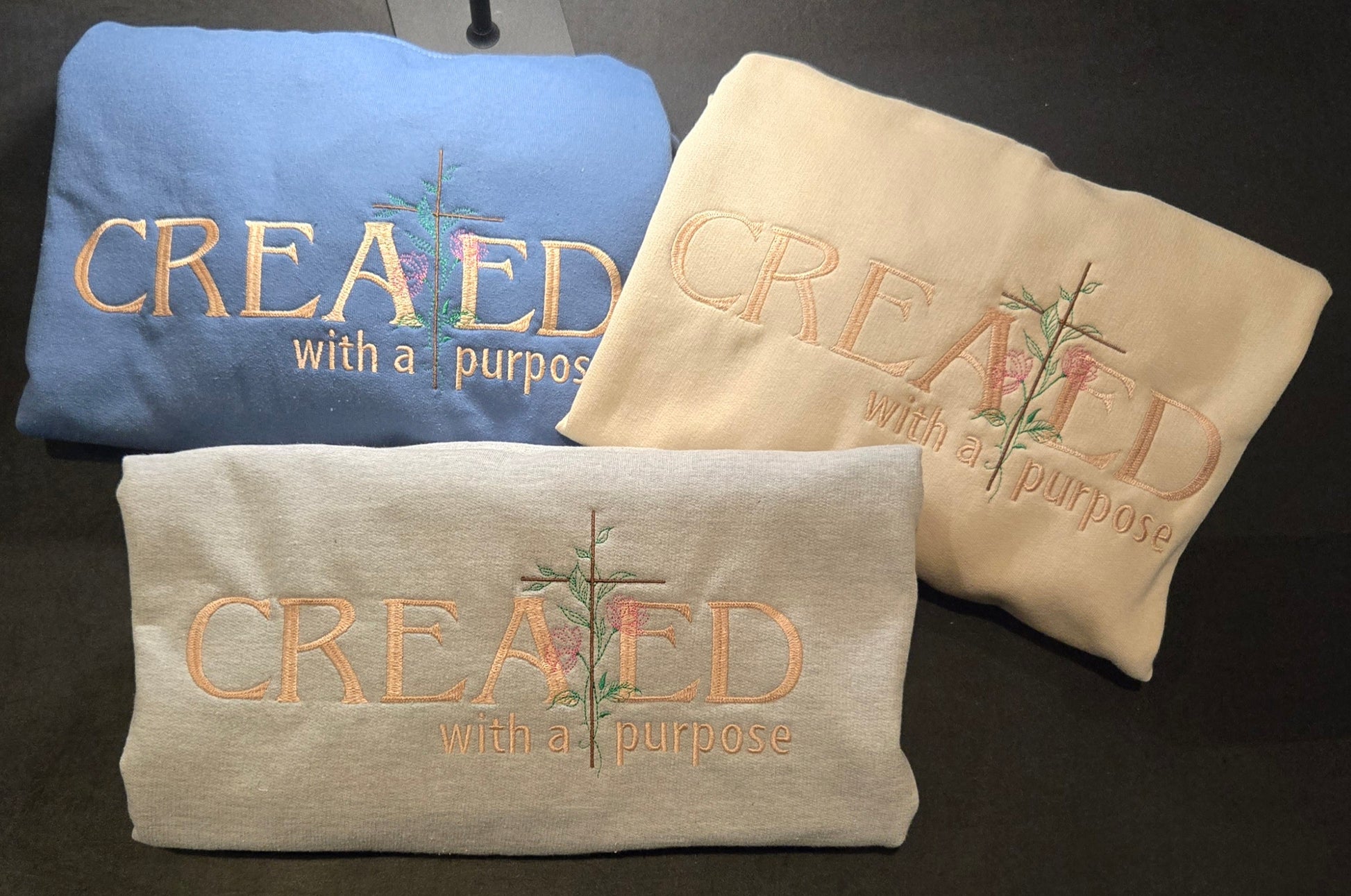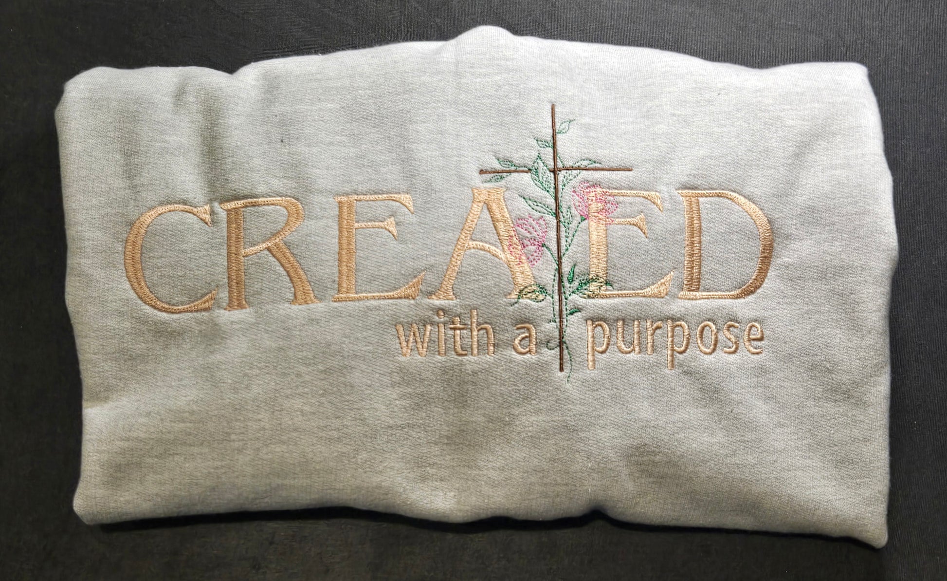 Elevate your style while expressing your faith with our embroidered Created with a Purpose Top. This bold top features a beautiful floral accent and comes in three stunning shades of sandstone, black, and gray. Perfect for any occasion, make a statement with this unique and meaningful piece.