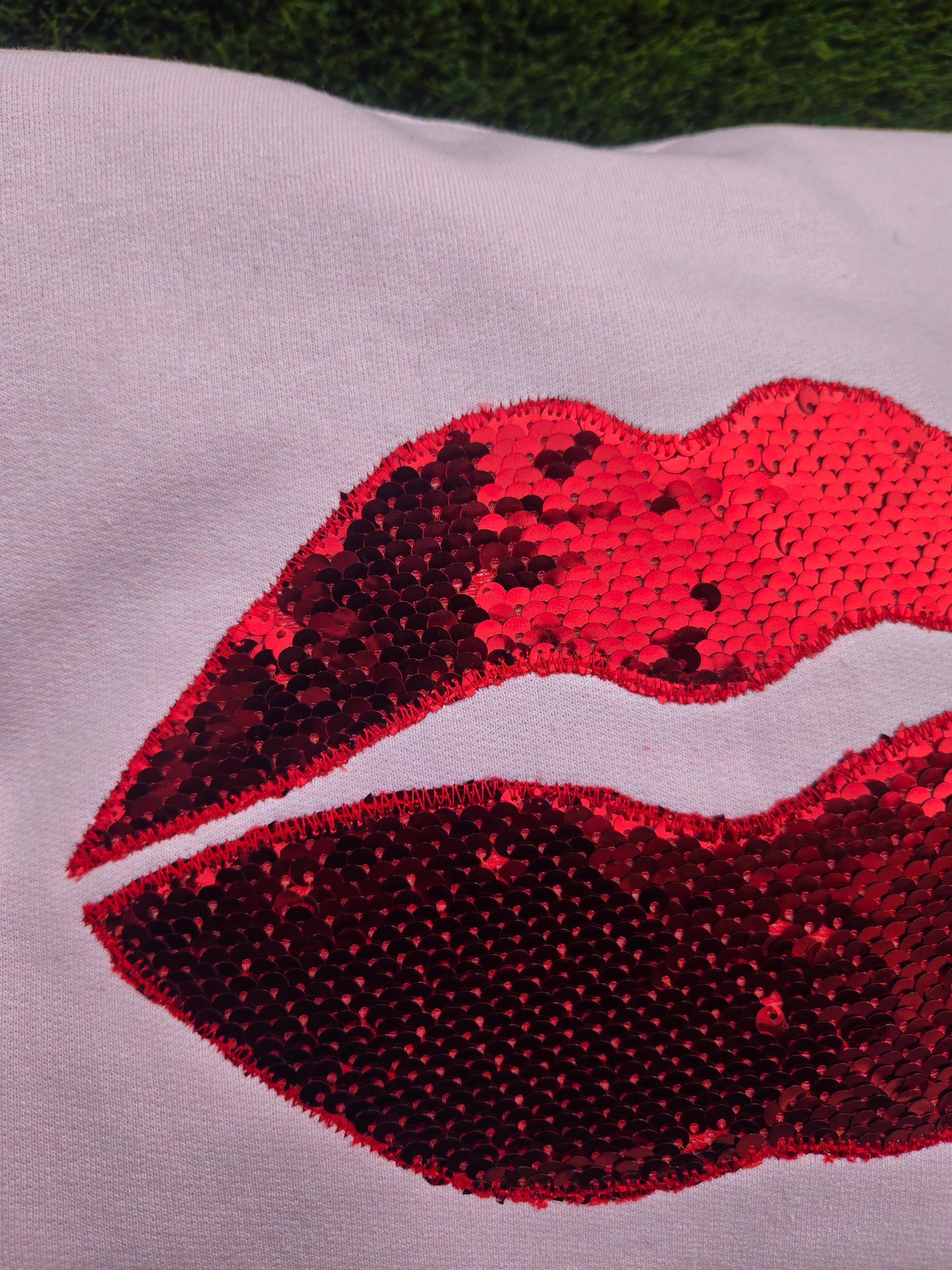 Get ready to spread love and style with our Sequin Lips Xoxo Applique Embroidery sweatshirt!